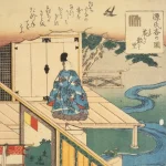 何ばかりの御よそひなく、うちやつして、御前などもなく、忍びて中川のほどおはし過ぐるに、ささやかなる家の木暗立などよしばめるに、よく鳴る琴をあづまに調べて掻き合はせ、にぎははしく弾きなすなり。御耳とまりて、門近なる所なれば、すこしさし出でて見入れたまへば、大きなる桂の木暗の追ひ風に、祭のころ思し出でられて、そこはかとなくけはひをかしきを、ただ一目見たまひし宿りなりと見たまふ。ただならず、ほど経にける、おぼめかしくやと、つつましけれど、過ぎがてにやすらひたまふ折しも、郭公鳴きてわたる。もよほしきこえ顔なれば、御車おし返させて、例の、惟光入れたまふ。