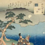 久しう手触れたまはぬ琴を、袋より取り出でたまひて、はかなくかき鳴らしたまへる御さまを、見たてまつる人もやすからず、あはれに悲しう思ひあへり。広陵といふ手を、ある限り弾きすましたまへるに、かの岡辺の家も、松の響き波の音に合ひて、心ばせある若人は身にしみて思ふべかめり。何とも聞きわくまじきこのもかのものしはふる人どもも、すずろはしくて、浜風をひきありく。入道もえ堪へで、供養法たゆみて、急ぎ参れり。